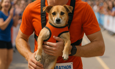Man Runs Marathon Carrying Shelter Dog to Raise Awareness