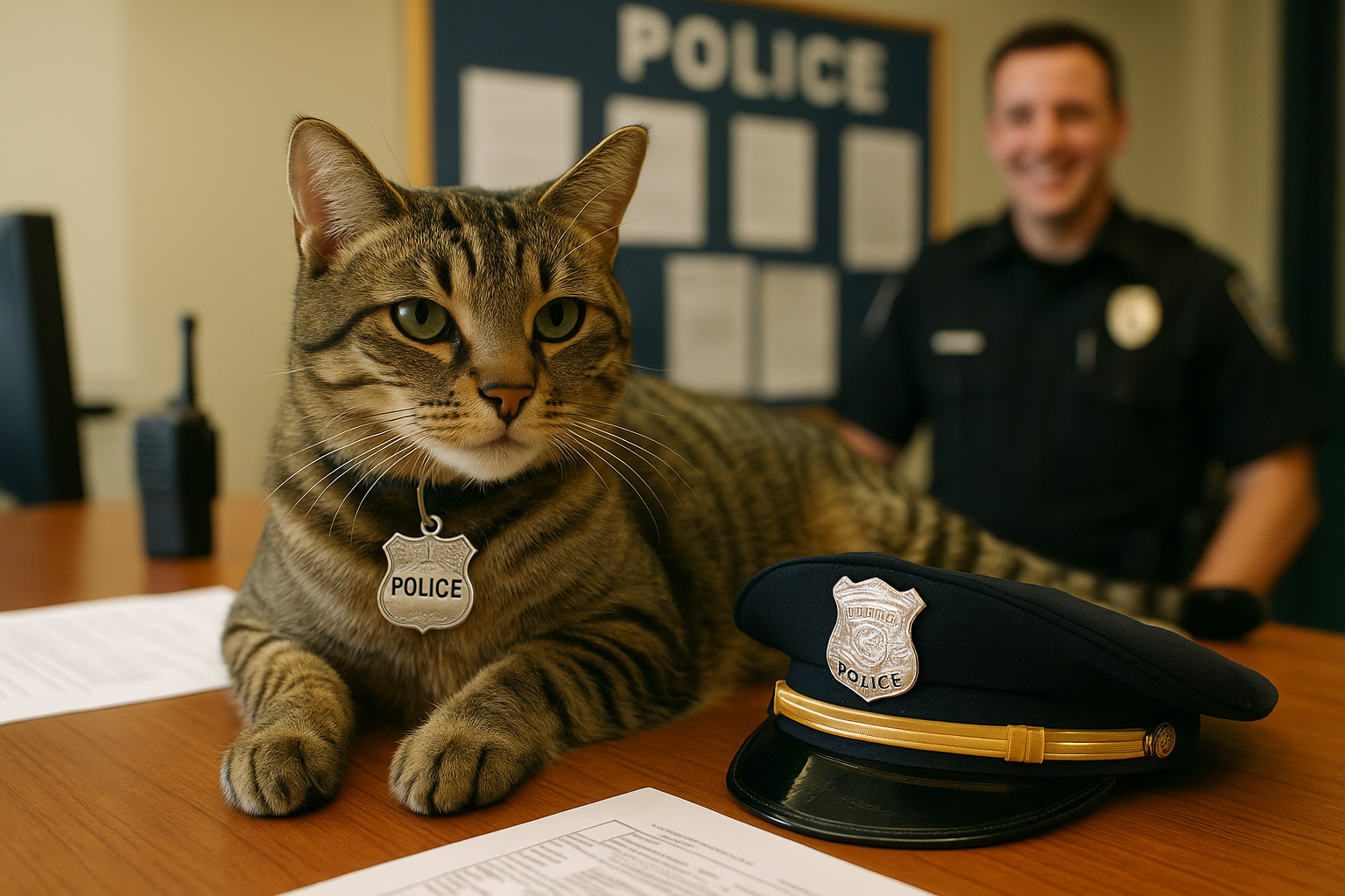 Not all heroes wear badges—some have whiskers and paws. In one small U.S. town, a stray cat wandered into a police station and never left. Today, she’s more than just a visitor—she’s the department’s official mascot.